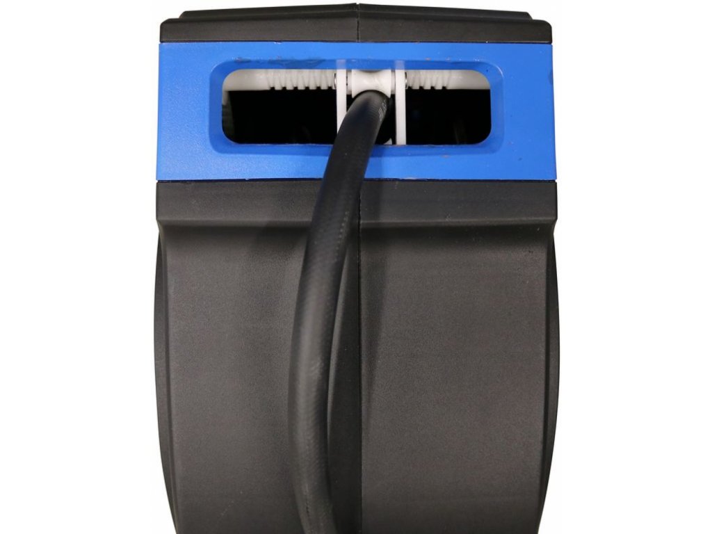 15m vzduchová hadice PVC-FLEX s rychlospojkou a stavěcí zarážkou, držák k upevnění bubnu na stěnu (→ otočný, max. stranové vychýlení: 170°).