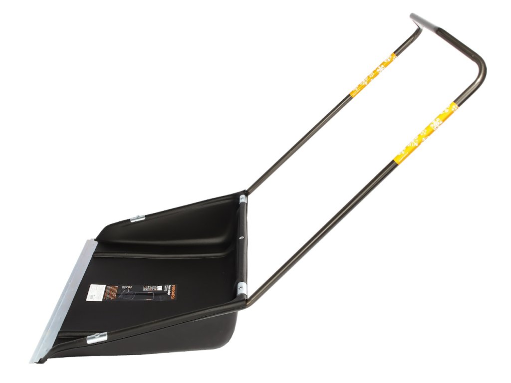 Shrnovač na sníh má držadlo z ocelové trubky, tuhou pozinkovanou ocelovou lištu a bezpečnostní reflexní potisk na držadle. Délka: 1480 mm, šířka: 830 mm, hmotnost: 7000 g. Staré Fiskars číslo: 143040.