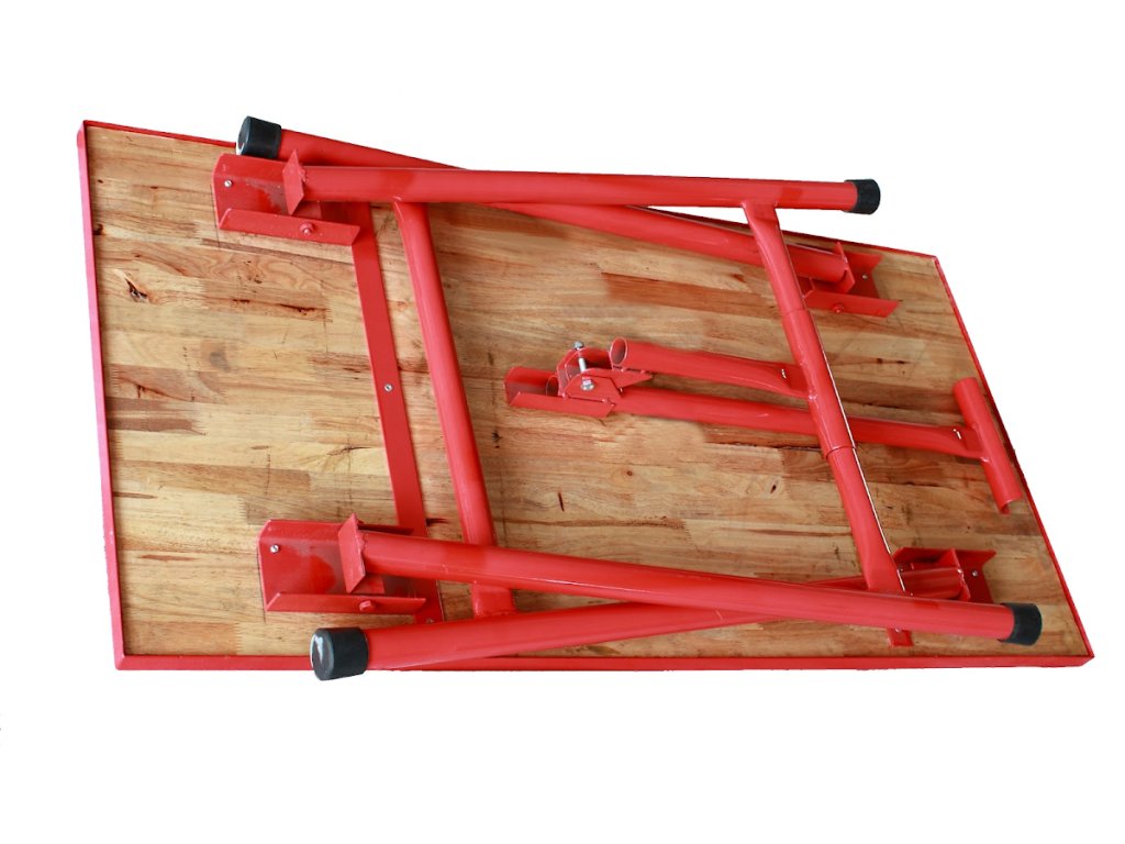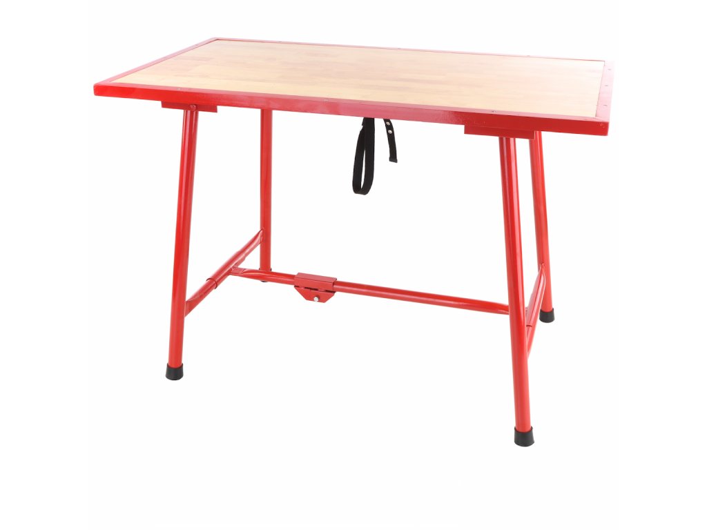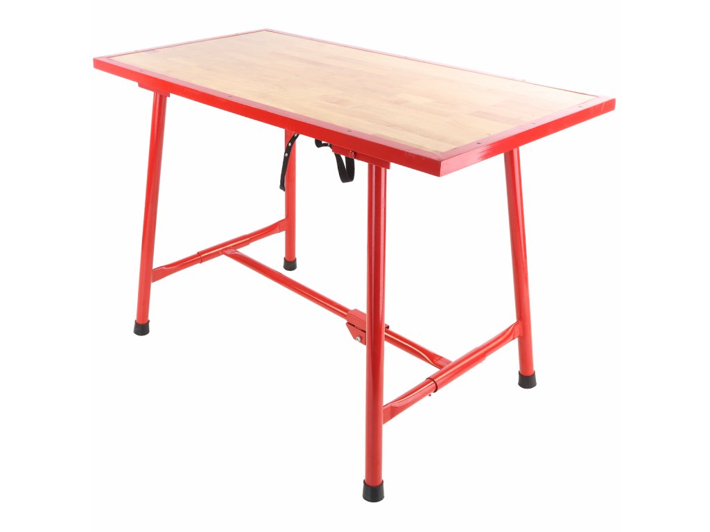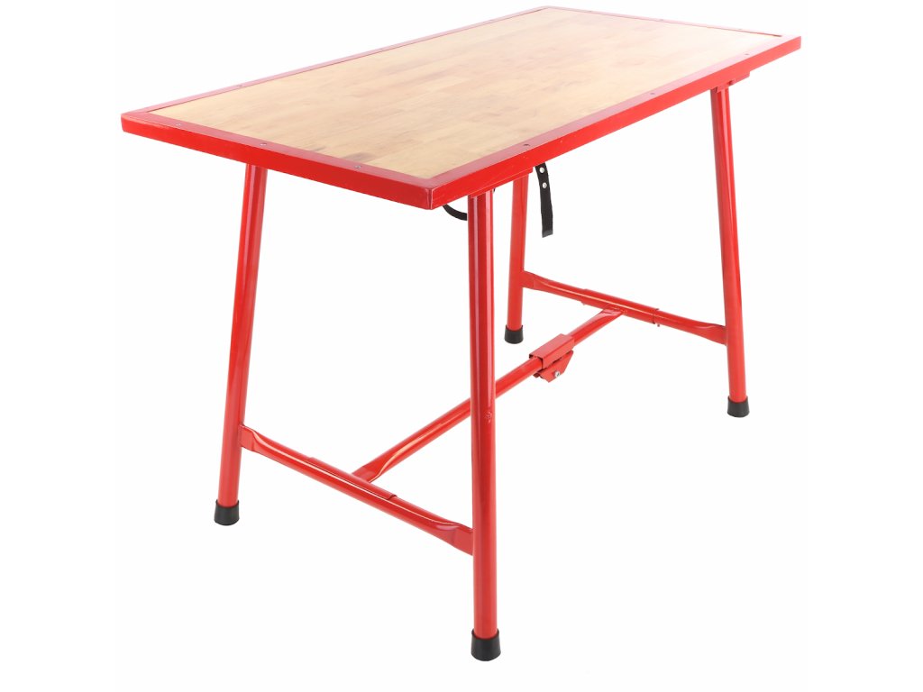 Stůl má trubkovou konstrukci se sklopnými nohami, která umožňuje snadné složení a úsporu místa při skladování nebo přepravě. Pracovní deska z překližky poskytuje dostatečně pevnou a odolnou pracovní plochu pro široké spektrum činností.