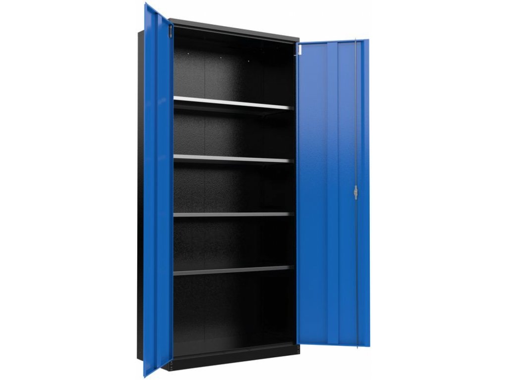 - Barevné provedení: rám a police RAL 9005 (černá), dveře RAL 5015 (modrá)