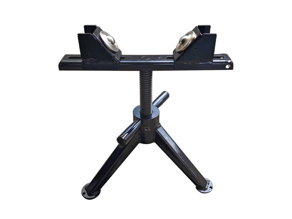 Ocelový stojan s otočnými kuličkami je vhodný pro podpěru trubek, nebo kulatin o průměru do 300 mm (12"), má nastavitelnou výšku 350 – 580 mm, max. nosnost 300 kg.