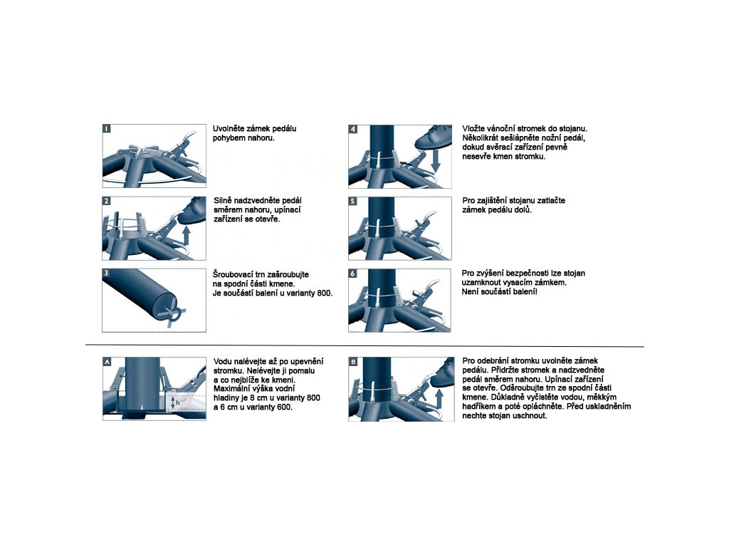 ! Je-li výška stromku větší než 450 cm, musí být strom také zajištěn připevněním lanka v horní třetině kmene. Konec je třeba připevnit na vyšší místo (např.: oblast stropu). Pro lepší stabilitu připevněte na dvou místech proti sobě.