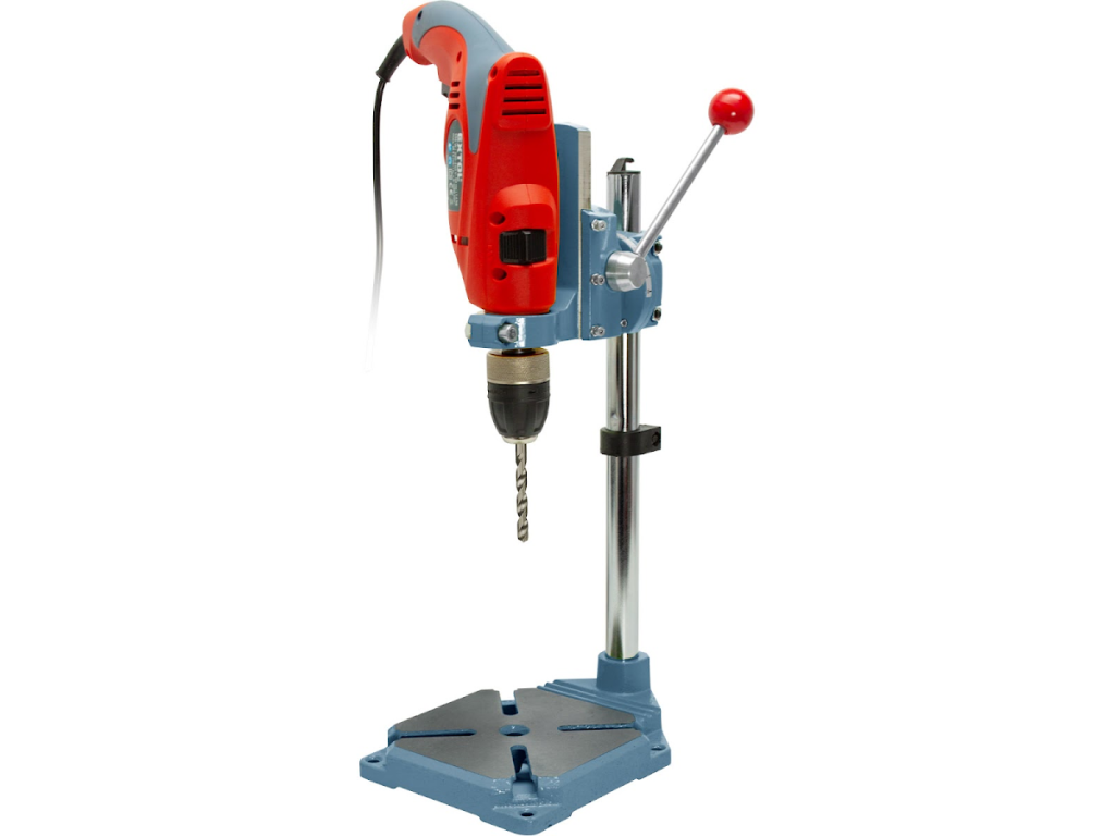 - stojan má částečně otočnou hlavu a lze jej proto nastavit na vrtání pod úhlem od 0-90°