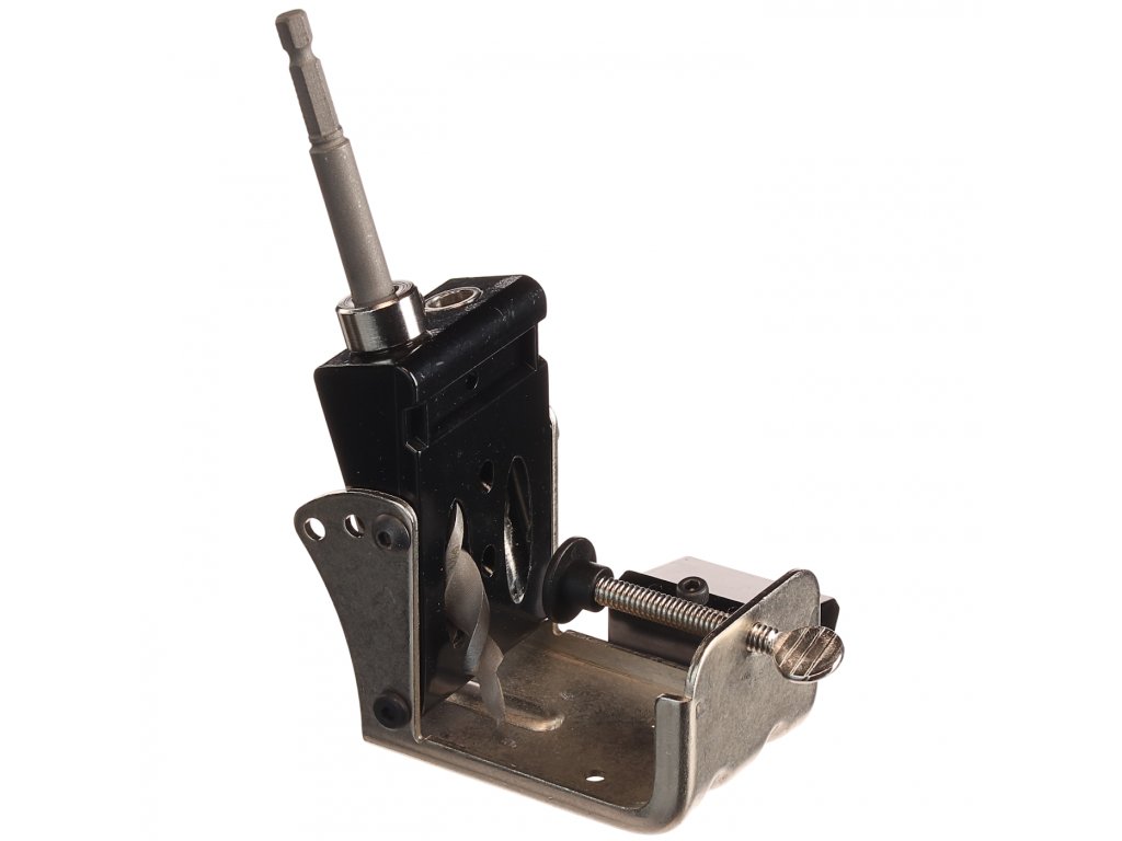 Umožňuje rychlé a přesné úhlové zahlubování rohových spojů dřevěných desek. Pro přesnou práci je přípravek vybaven vodováhou. Zahlubování je možné ve třech úhlech 17°; 30°; 45°. Součástí balení je doraz, vrták a inbus klíč.