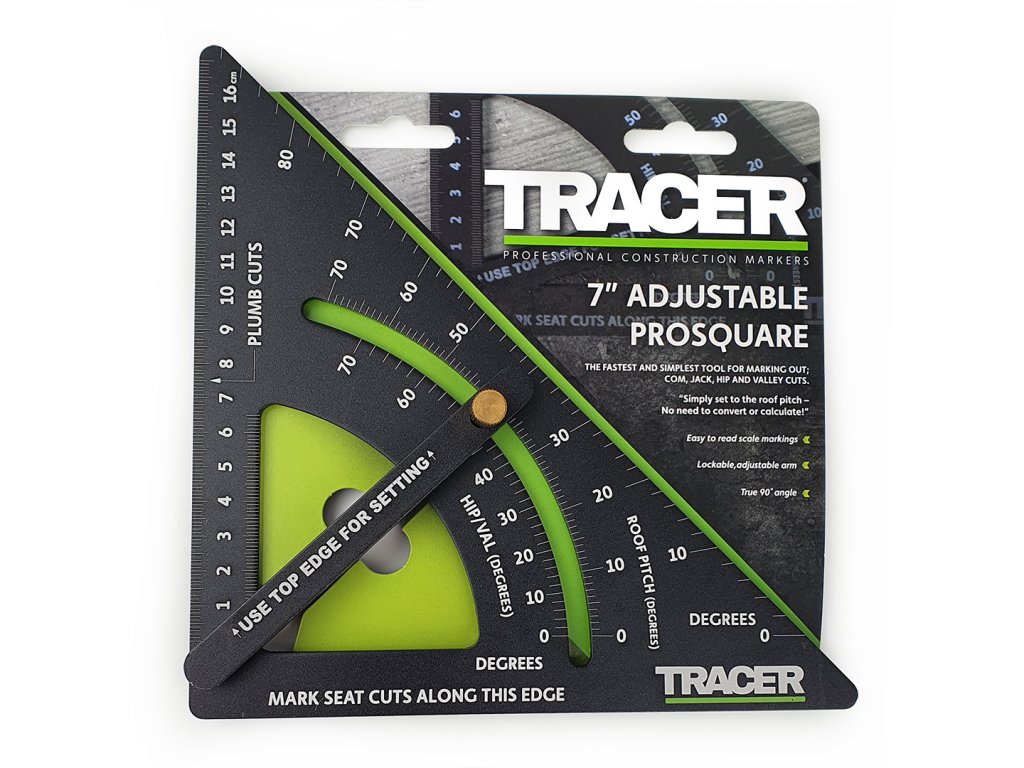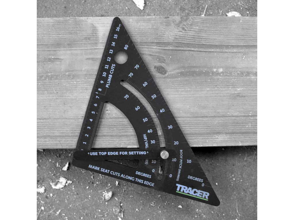 Tesařský úhelník TRACER je špičkovým pomocníkem při stavbě střech, pergol a dalších přístřešků. Využijí ho profesionální tesaři, truhláři, ale i domácí kutilové. Disponuje stupnicí pro označení sklonu střechy. Lze použít i jako vodítko při řezání elektrickou pilou či pravítko s metrickou stupnicí o délce 17 cm se stupnicí pro značení krokve.