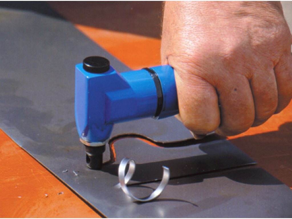 Pro karoserie nebo Al plech do tloušťky 1 mm. Vysokou rychlostí vystřihuje malé „půlměsíčky" – vhodné i pro složité křivky. Tlak vzduchu 6 bar, spotřeba vzduchu 430 l/min, 3 500 kmitů/min, rychlost řezu 2,6 m/min.