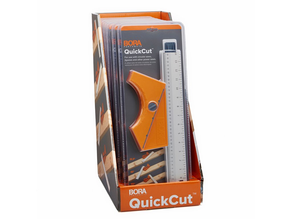 Pomocí vodícího pravítka BORA Quickcut™ bude měření a značení úhlů snadnější, než kdy dříve. Rychlé překlopení rukojeti vám umožní přeměřit nejběžnější pracovní úhly. Použití 35 cm dlouhé vodící lišty je tím nejjednoduším způsobem, jak provádět přesné a rovné řezy. Na pravítku jsou vyznačeny metrické a imperiální jednotky. Vyrobeno z extrudovaného hliníku. Prodloužitelné pomocí příslušenství BORA.