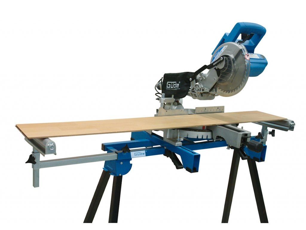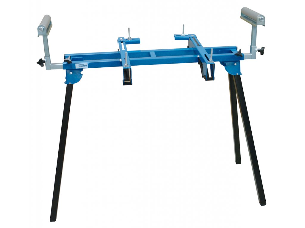 Stabilní fixační stojan pro bezpečné upevnění stroje (→ max. rozměry upnutí: 450 x 850 mm), polohovatelné podávací válce (→ max. délkové/výškové vyložení: 340/145 mm).