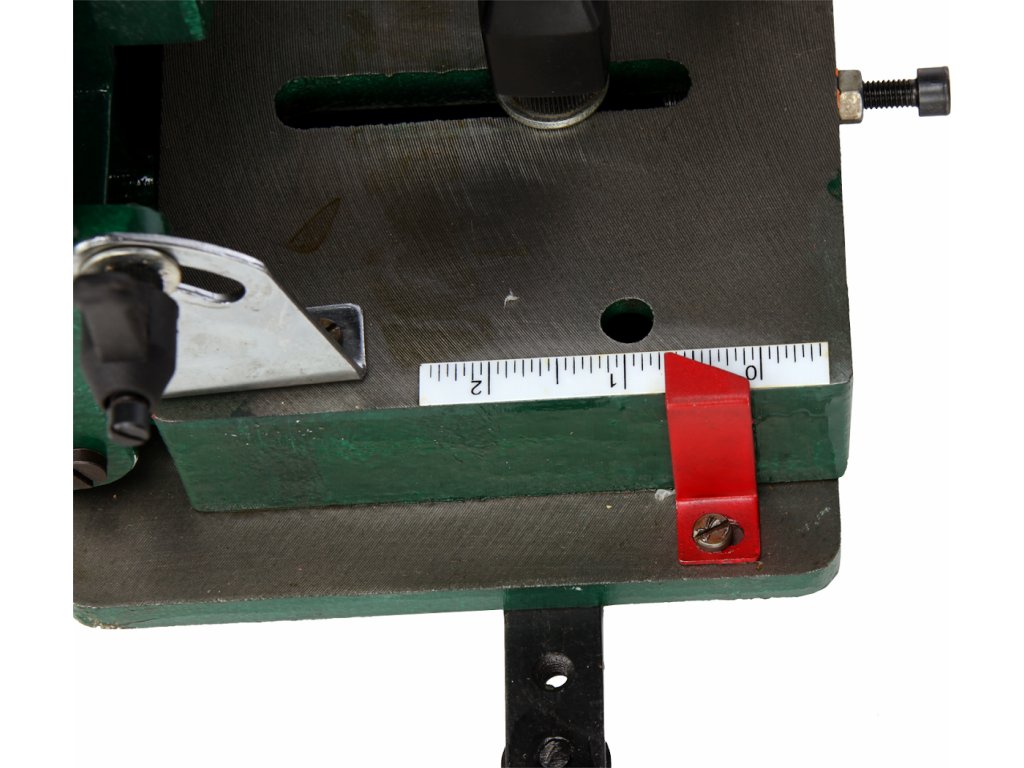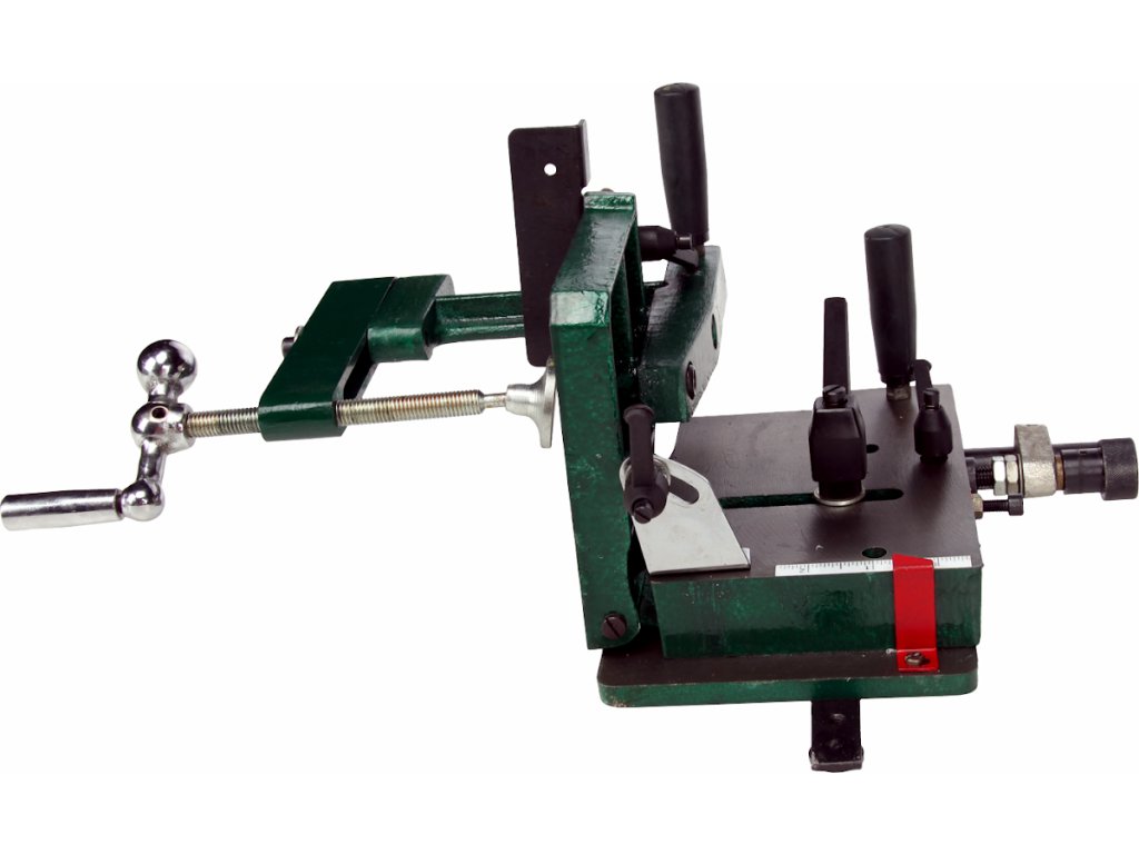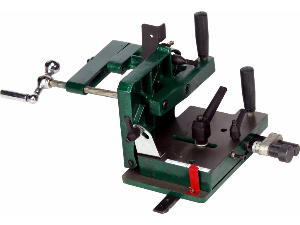 Masivní litinový přípravek, vhodný pro přesné ustavení obrobku vůči nástroji při řezání, čepování, broušení, drážkování nebo falcování. Vedení přípravku je pomocí drážky pro úhlové pravítko.