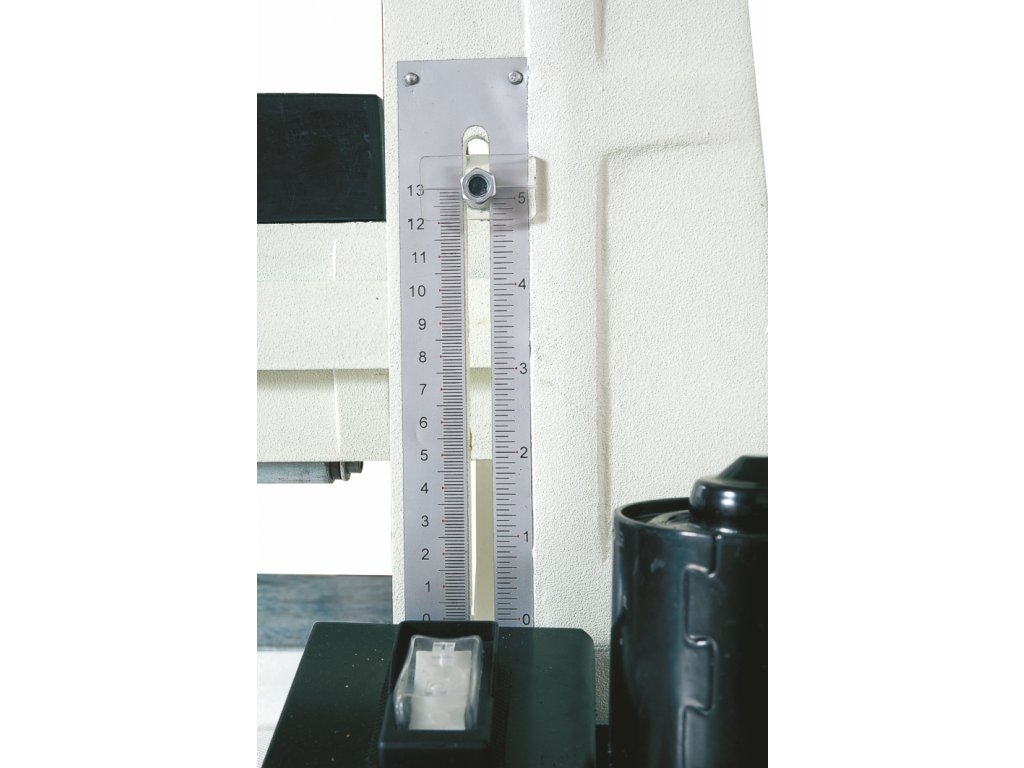 Napájecí napětí stroje 230 V/50 Hz. Pohon brusného válce 1 100 W, otáčky 1 440/min, válec 132 × 410 mm, délka brusné plochy 405 mm, max. výška broušeného materiálu 130 mm. Motor podávacího pásu 50 W, rychlost posuvu 0 – 3 m/min. Průměr výstupu pro odsávání 62 mm. Obalové rozměry 920 × 610 × 670 mm.