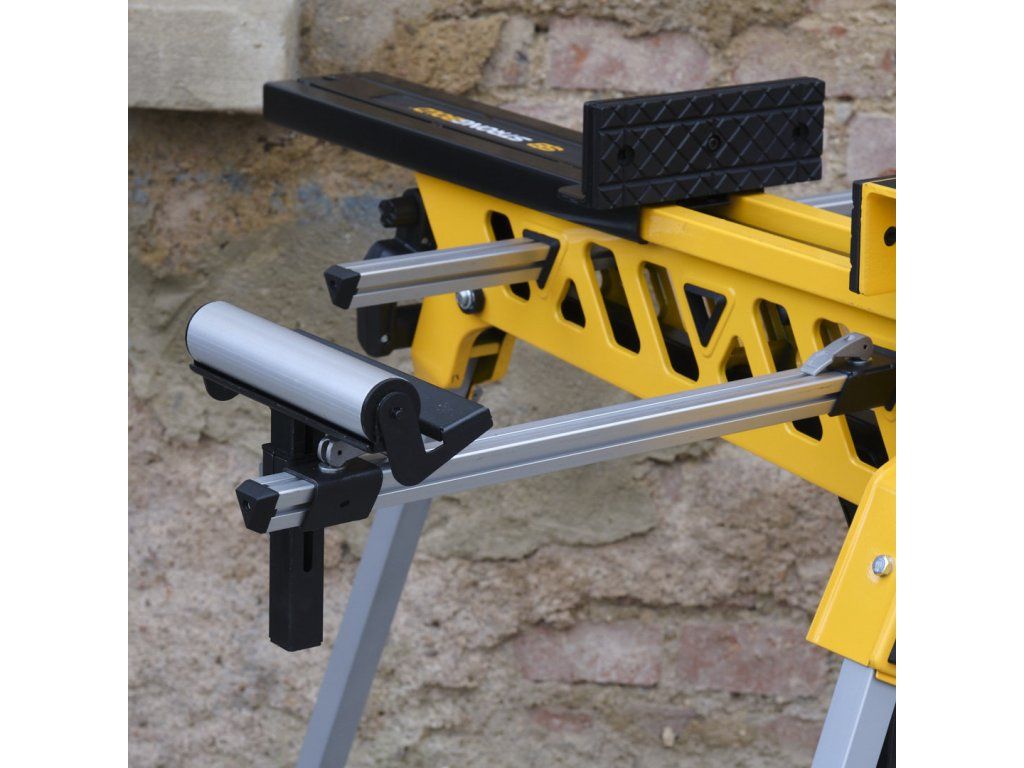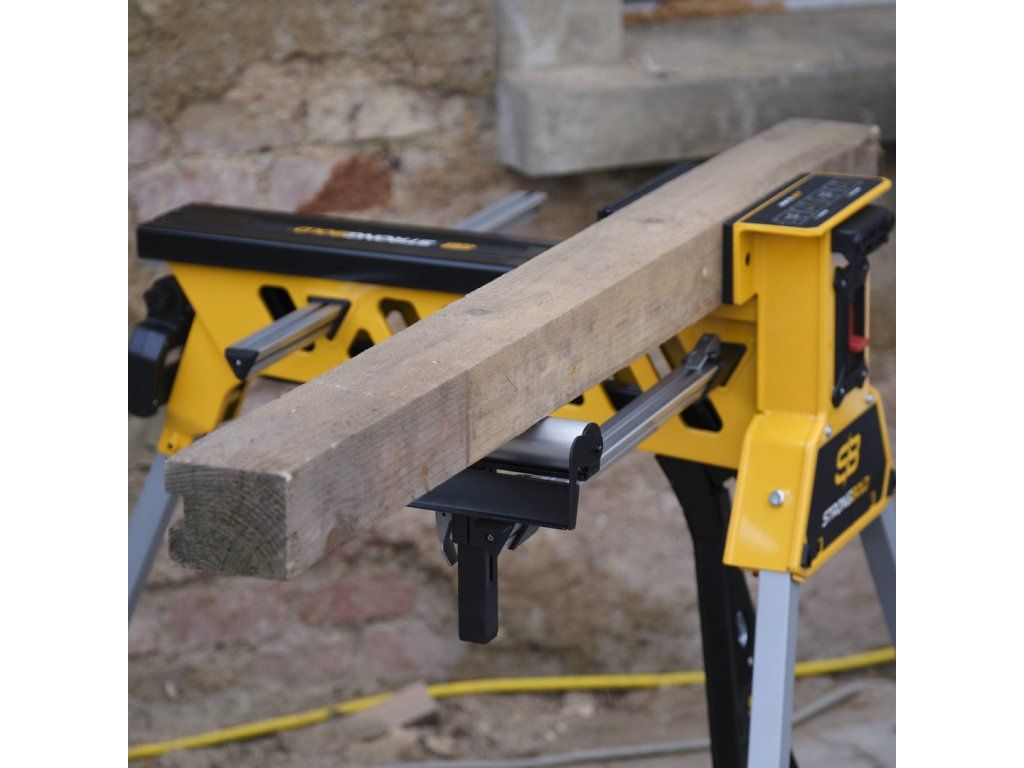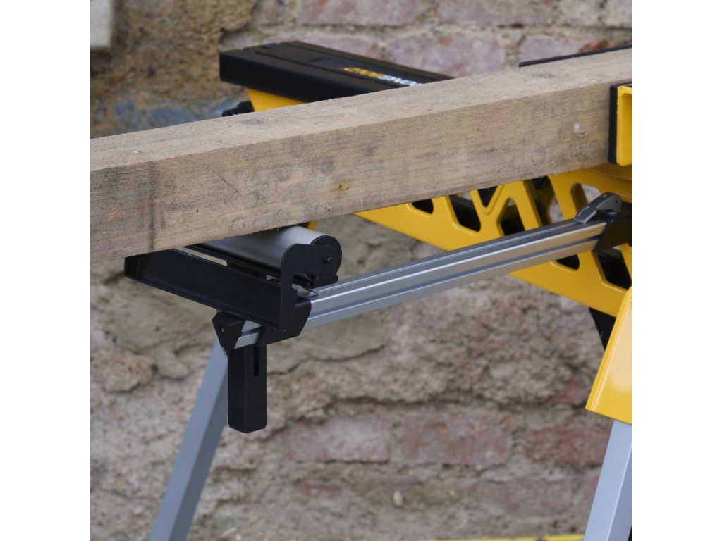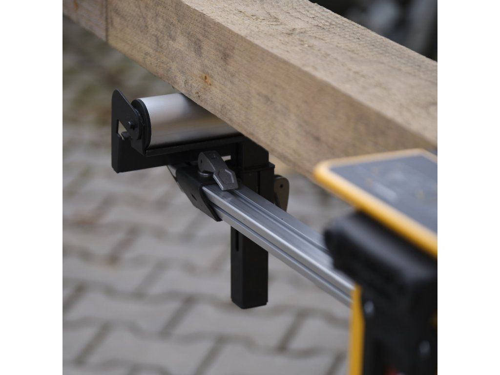 Válečková podpěra pro přenosný stojanový svěrák, která rozšíří jeho funkci a zajistí tak maximální stabilitu při práci s dlouhým materiálem. Pro připevnění na kozu je třeba vlastnit také prodlužovací adaptér. Vhodné pro posouvání dřevěných profilů, desek, železných trubek a dalších pevných materiálů.