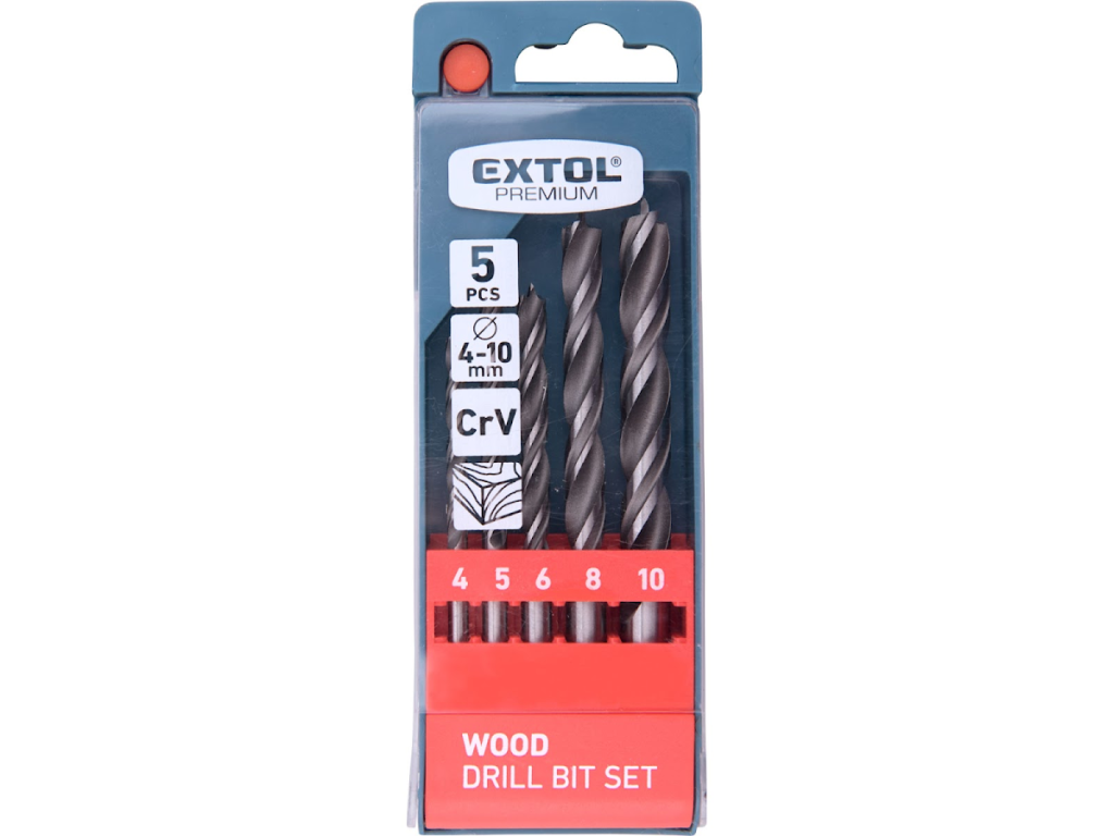 Vrtáky do dřeva, sada 5ks, O 4-10mm, CrV, EXTOL PREMIUM