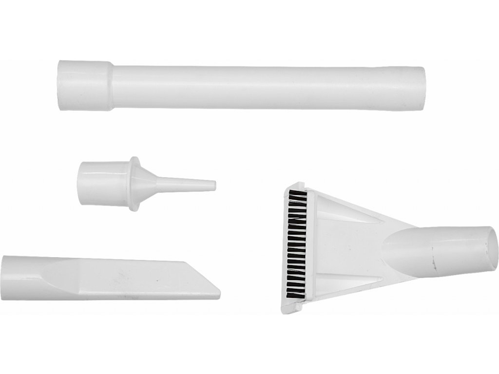 - obsah sady: hliníková pistole, PVC hadice, 2× hadicová spona, prodlužovací nástavec, 2× hubice pro vysávání dutin, hubice s kartáčem, sáček na odpad