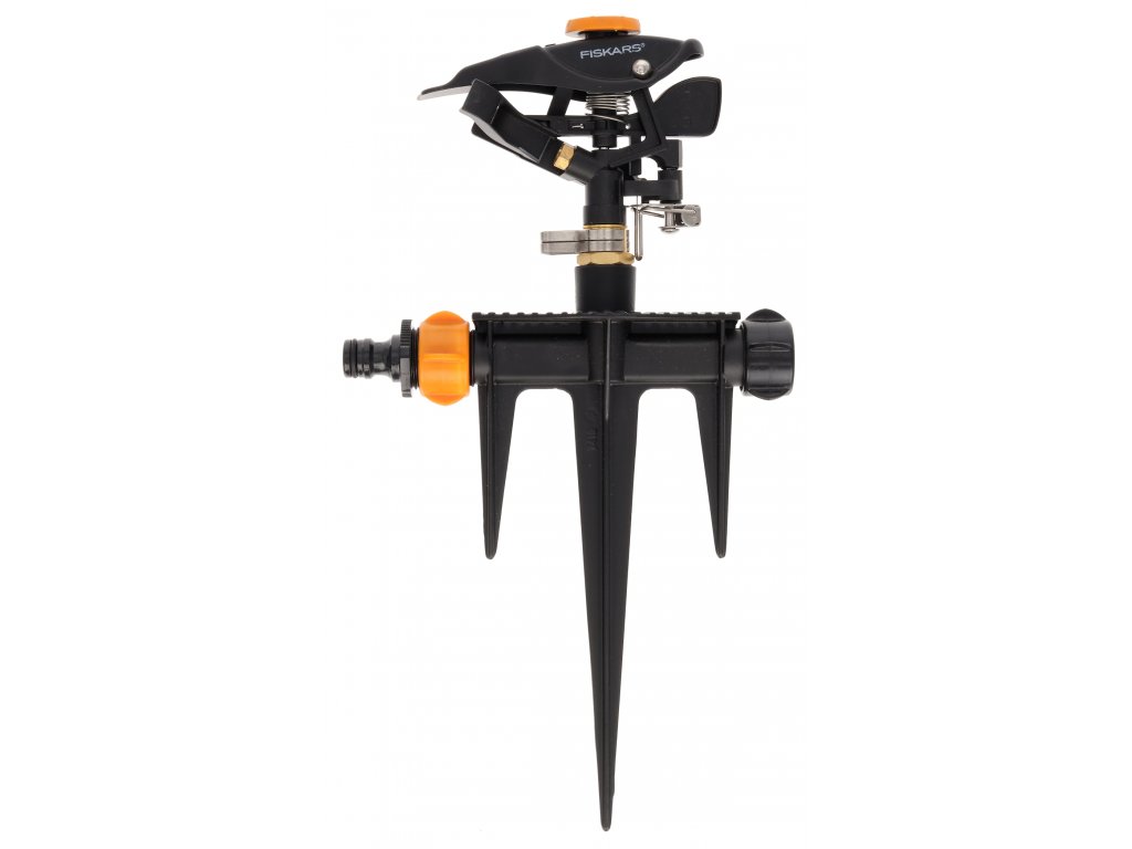 Odolný kovový postřikovač obsahuje ovládací prvky pro snadné nastavení vzdálenosti závlahy, typu rozstřiku a kontroly rotace pro přesné zavlažování jakékoli oblasti vaší zahrady. Typ rozstřiku lze nastavit od silného proudu až k jemné mlze. Nastavení oblasti závlahy až do průměru 26 m (> 500 m2). Kovová trnová základna. Univerzální připojení je kompatibilní s ostatními značkami. Výška: 36 cm, délka: 19,5 cm, šířka: 6,6 cm. Hmotnost: 0,47 kg.